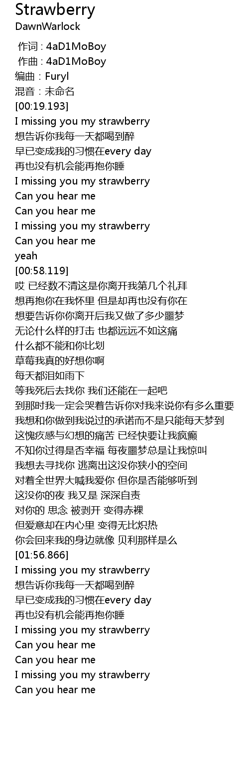 | [00:43.436] | I missing you my strawberry |