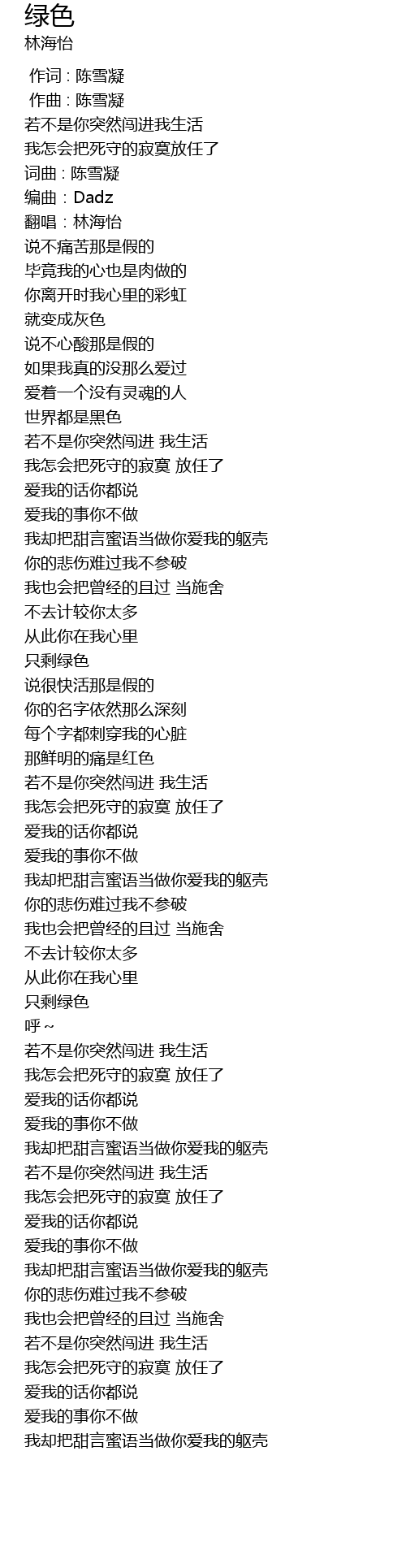 | [01:24.370] | zhǐ shèng lǜ sè |