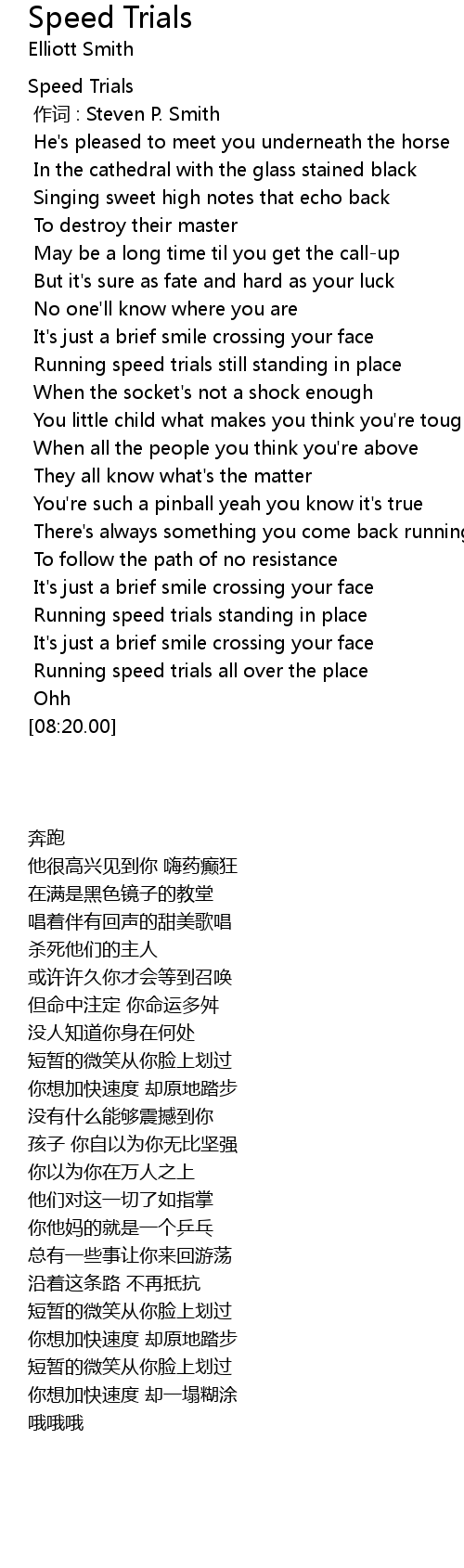 | [02:03.03] | 你想加快速度 却原地踏步 |