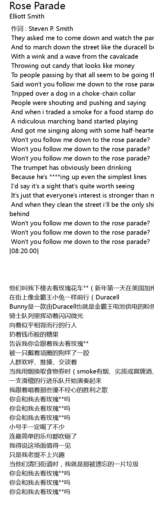 | [01:52.33] | Won't you follow me down to the rose parade? |