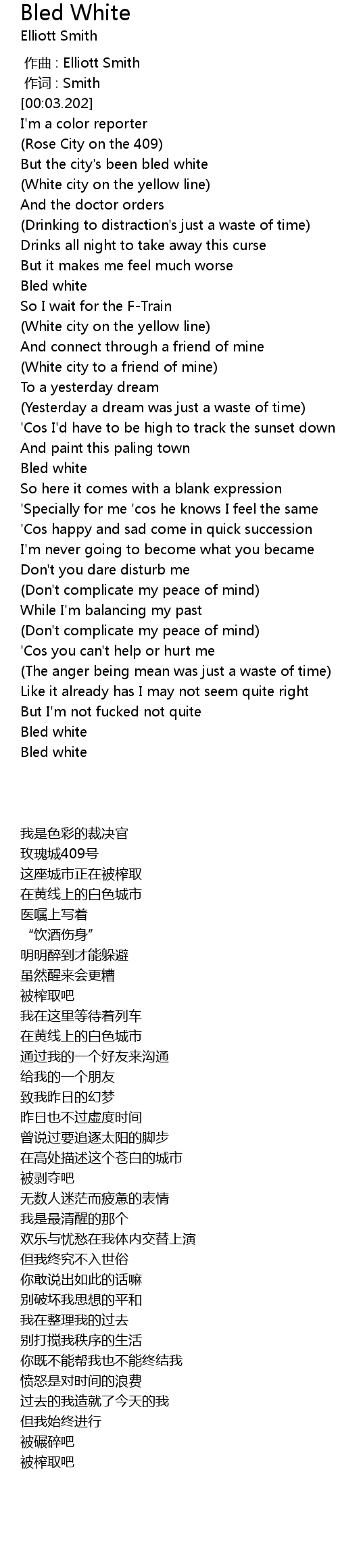 | [00:00.00] | zuò qǔ : Elliott Smith |