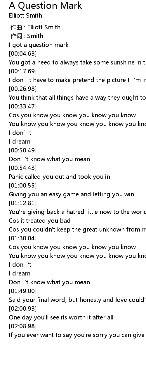 | [00:00.00] | zuò qǔ : Elliott Smith |