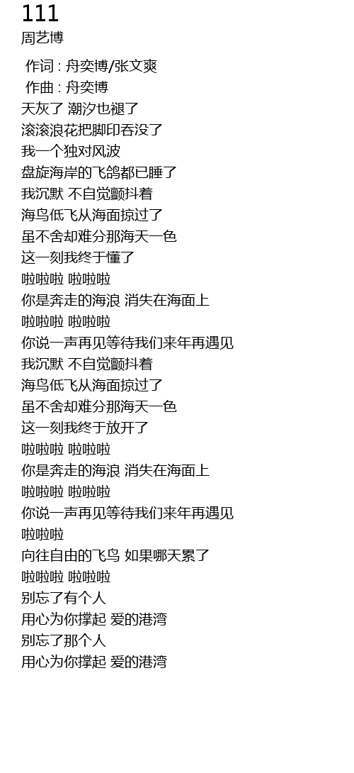 | [02:43.497] | 啦啦啦 啦啦啦 |