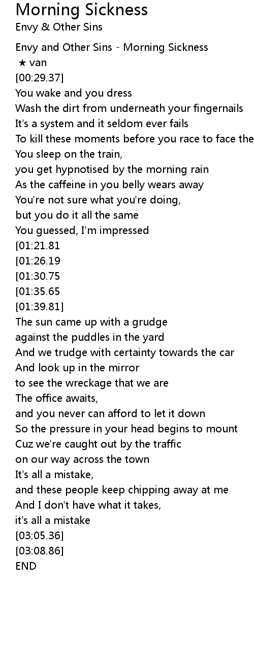 | [00:00.00] | Envy and Other Sins Morning Sickness |