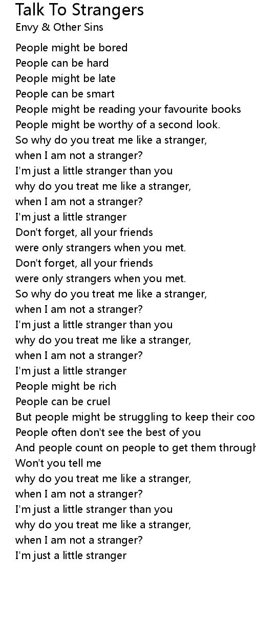 So why do you treat me like a stranger, |