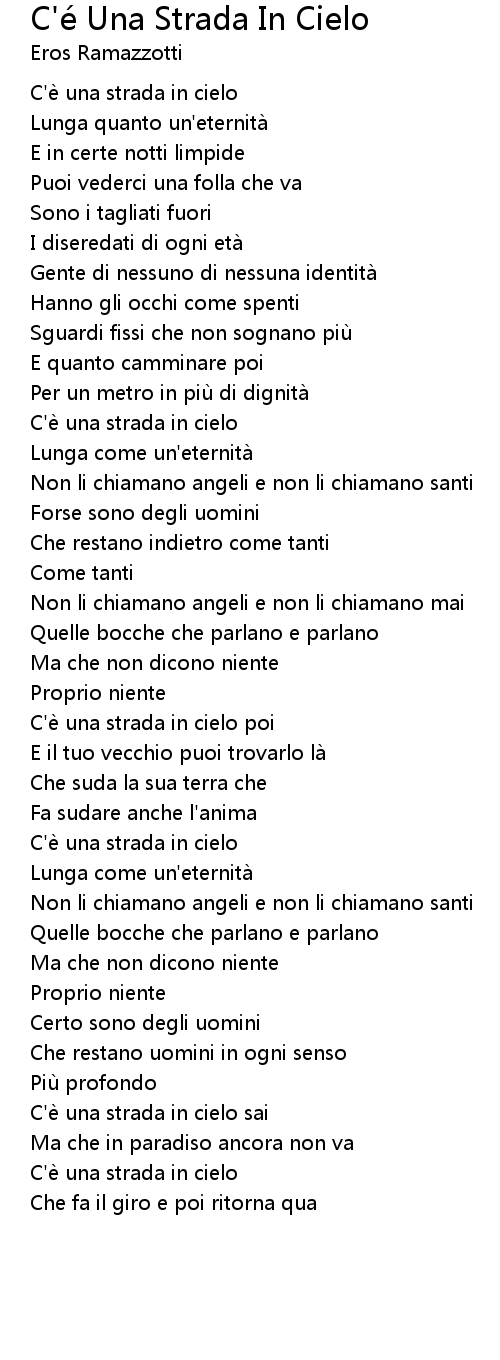 | 歌曲 | C'é Una Strada In Cielo |