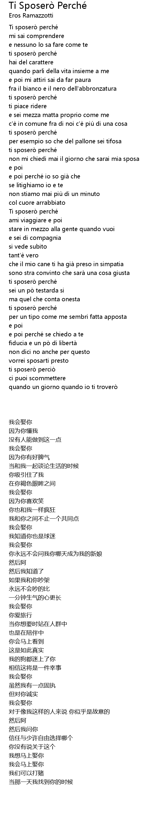| 歌曲 | Ti Sposerò Perché |