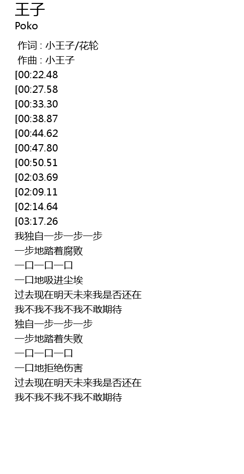 | [00:01.000] | 作曲 : 小王子 |