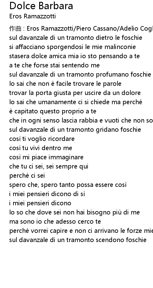 | 作曲 : Eros Ramazzotti/Piero Cassano/Adelio Cogliati | |