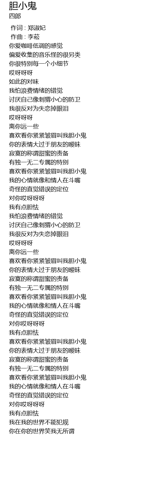 | [03:20.941] | 喜欢看你紧紧皱眉叫我胆小鬼 |