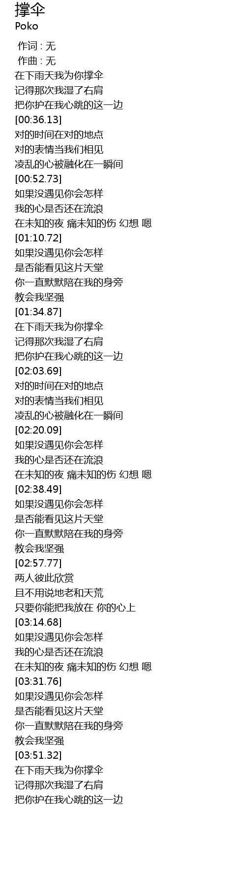| [03:52.69] | 在下雨天我为你撑伞 |
