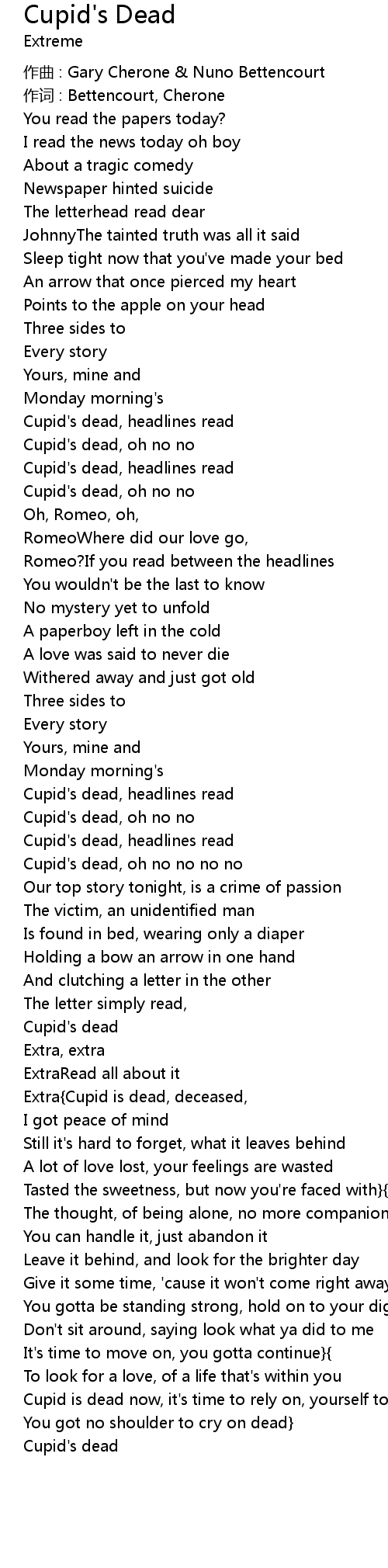 | Cupid' s dead, oh no no | |