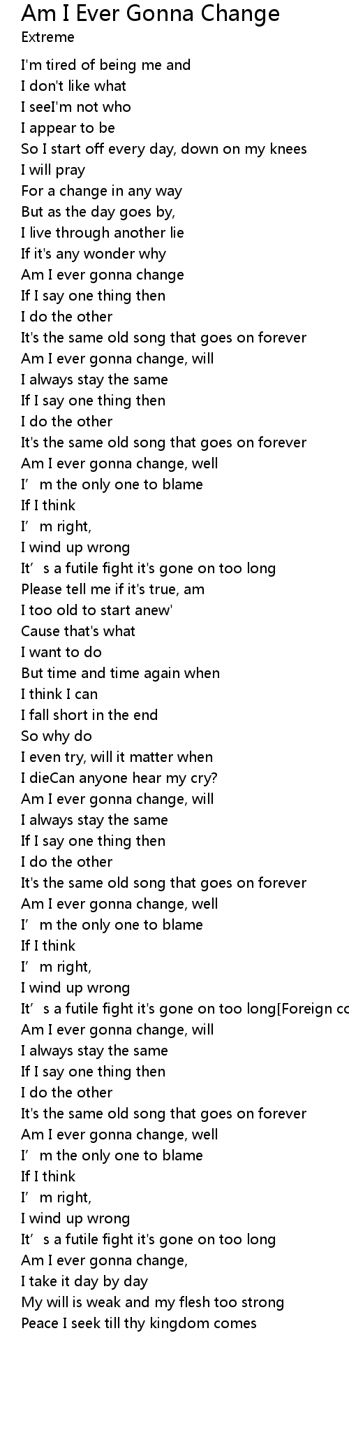 | Am I ever gonna change | |