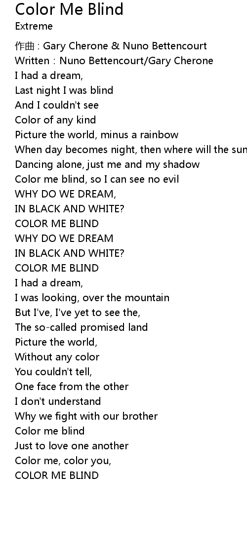 | 歌曲 | Color Me Blind |