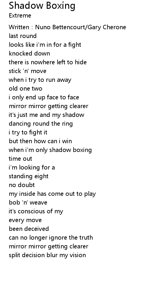 | when i'm only shadow boxing | |