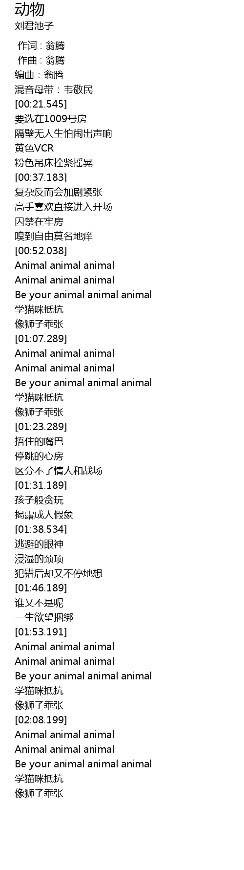| [00:59.788] | Be your animal animal animal |