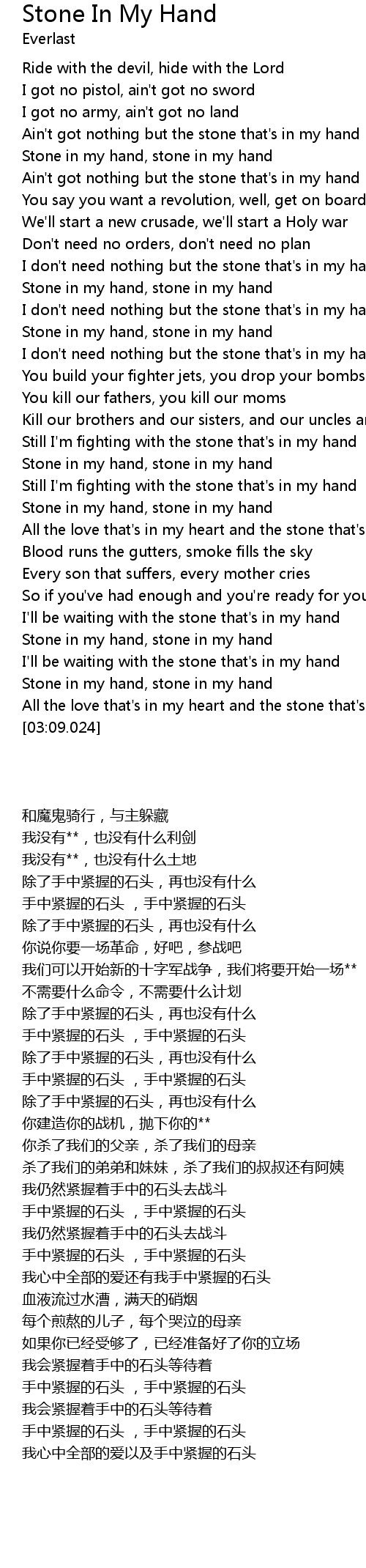 Ain't got nothing but the stone that's in my hand |