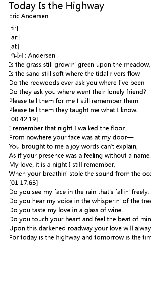 | [02:10.64] | For today is the highway and tomorrow is the time. |