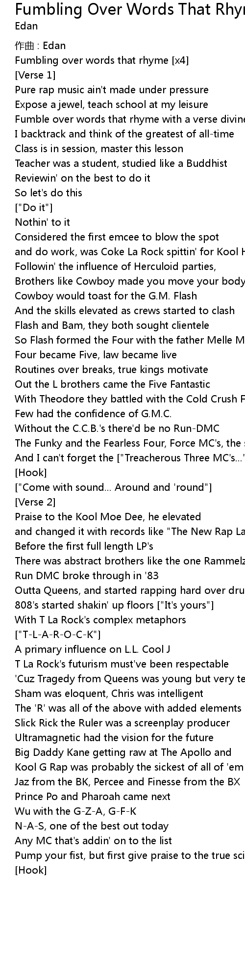 | 歌曲 | Fumbling Over Words That Rhyme |