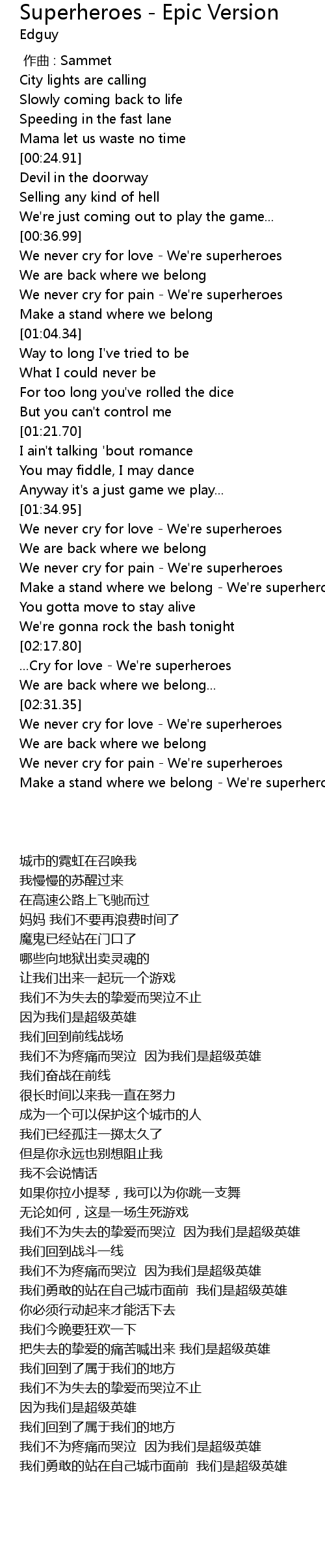 | [02:54.99] | Make a stand where we belong - We're superheroes |