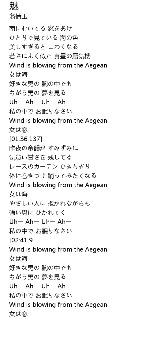 | [00:36.239] | 南にむいてる 窓をあけ |