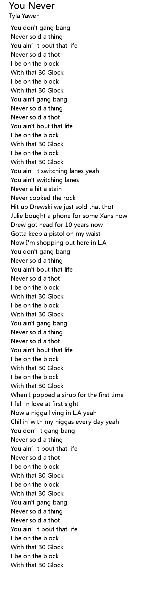| [00:50.383] | You ain't bout that life |