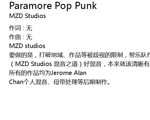 | 所有的作品均为Jerome Alan Chan个人混音、母带处理等后期制作。 |