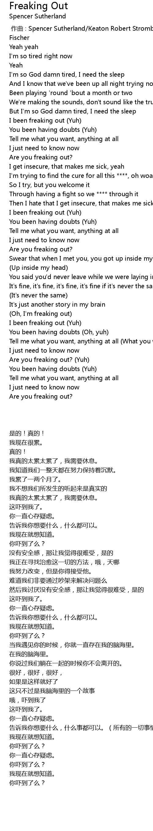 | [00:39.81] | I been freaking out Yuh |