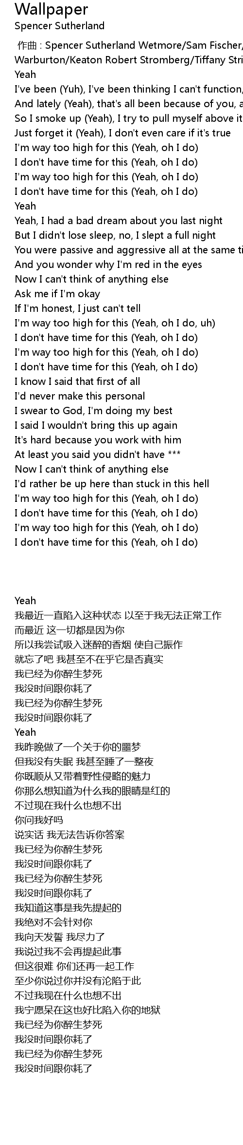 | [00:46.35] | I'm way too high for this (Yeah, oh I do) |