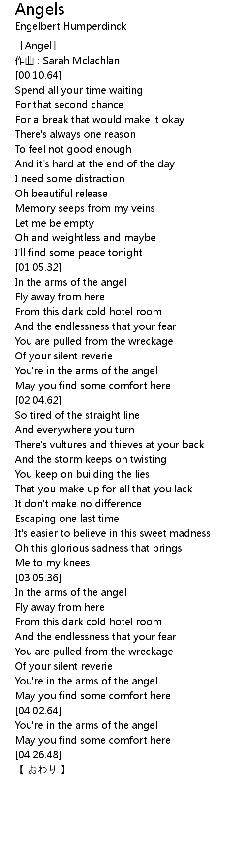 | [00:06.64] | 作曲∶Sarah Mclachlan |