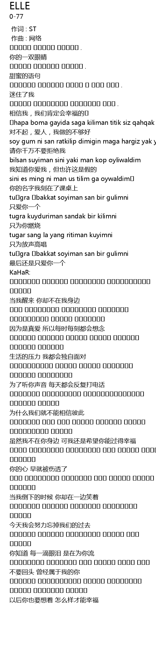 | [00:15.377] | سېنىڭ تاتلىق سۆزۈڭ . |