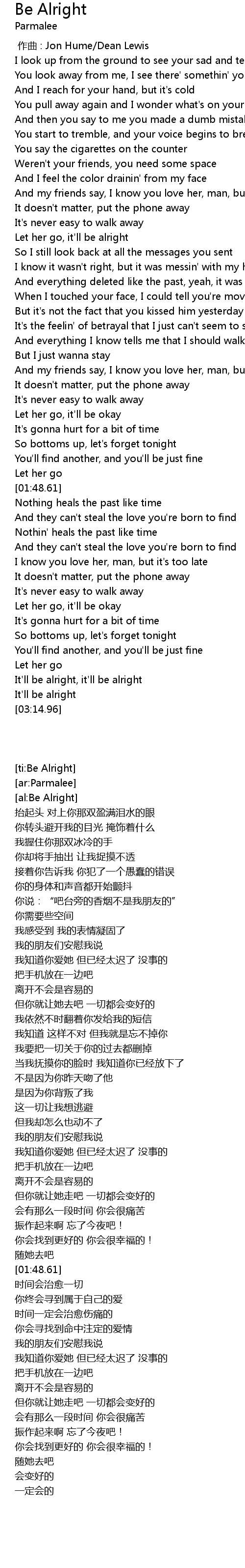 | [03:00.20] | It' ll be alright, it' ll be alright |