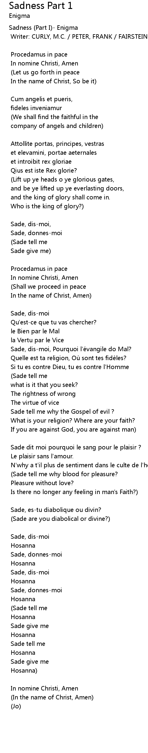 | Sade, dis-moi, Pourquoi l'évangile do Mal? | |