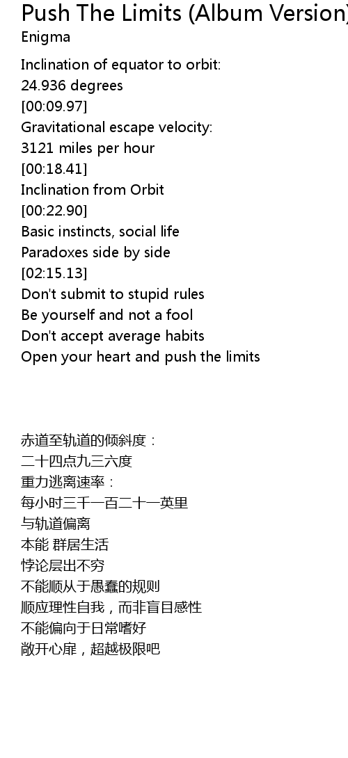 | [02:35.37] | Open your heart and push the limits |