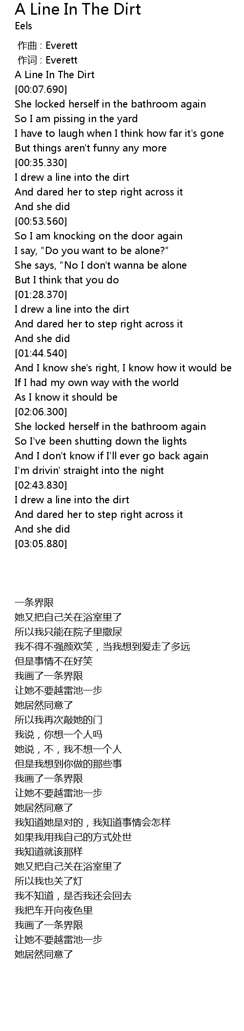 | [00:15.910] | 所以我只能在院子里撒尿 |