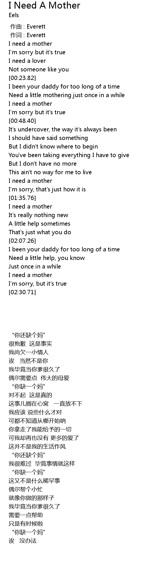 | [00:33.17] | 偶尔需要点 伟大的母爱 |