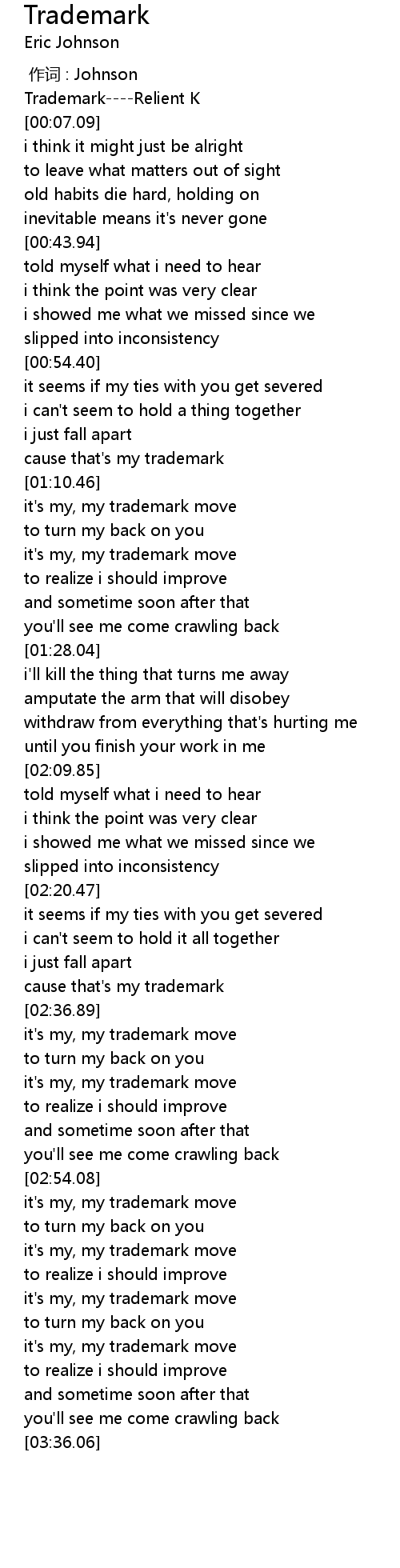 | [00:04.58] | Trademark----Relient K |