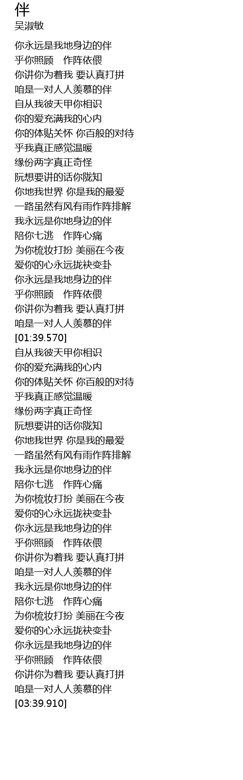 | [03:33.260] | 咱是一对人人羡慕的伴 |