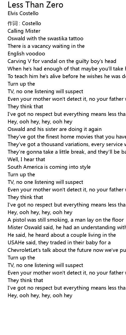 | 歌曲 | Less Than Zero |