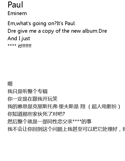 | [00:00.380] | Em,what's going on?It's Paul. |