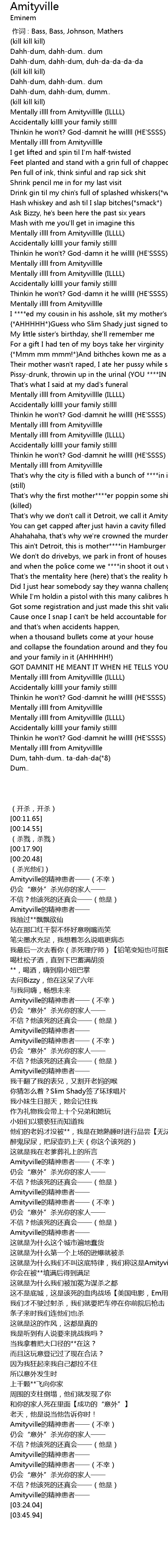 | [03:11.62] | Mentally illll from Amityvilllle ILLLL |