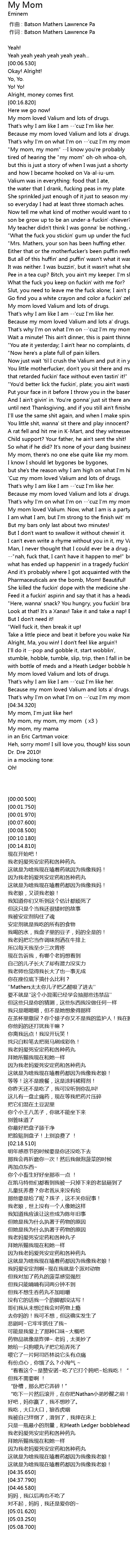 | [04:15.490] | 我老妈爱死安定药和各种药丸 |