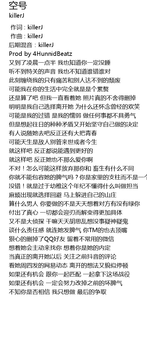 | [00:09.341] | hòu qī hùn yīn: killerJ |