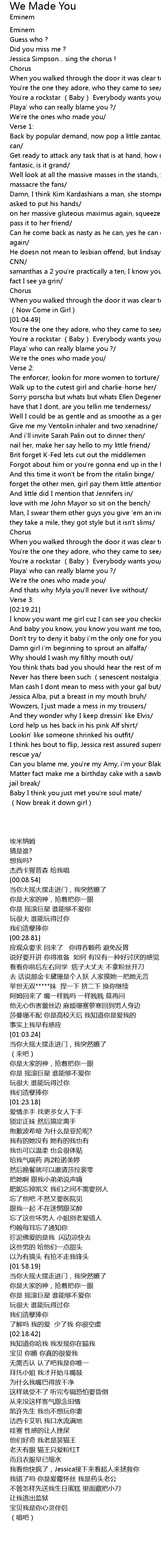 | [02:59.56] | 我错了吗 你是爱霉怀丝 我是药头老公 |