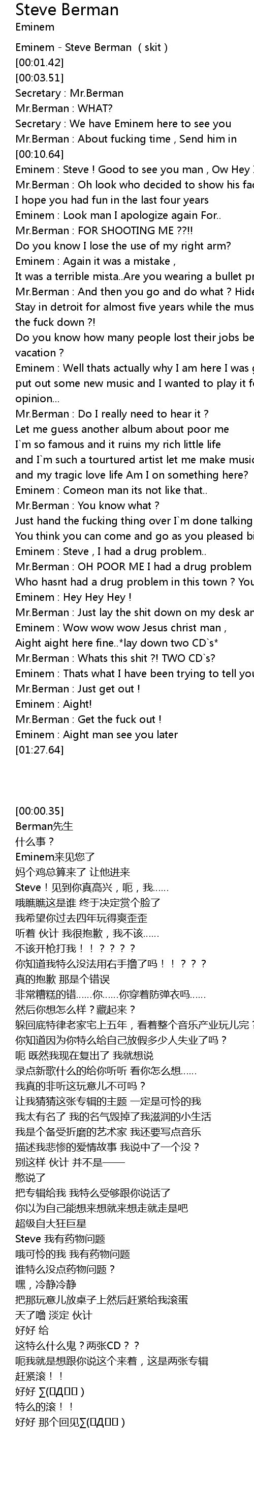 | [00:00.35] | Eminem - Steve Berman (skit) |