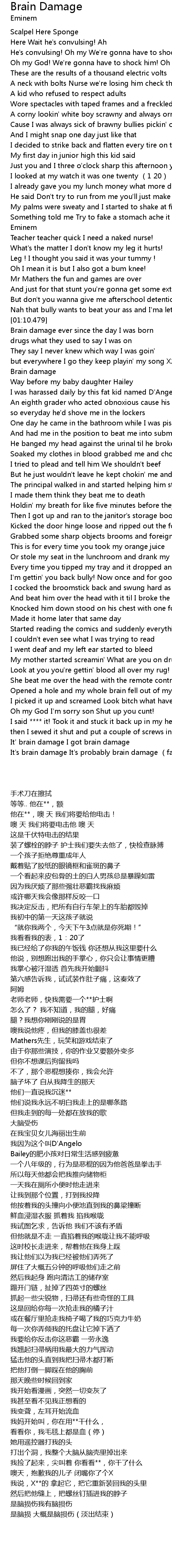 | [02:55.829] | 我说,X**的 拿起它,把它重新装回我的头里 |