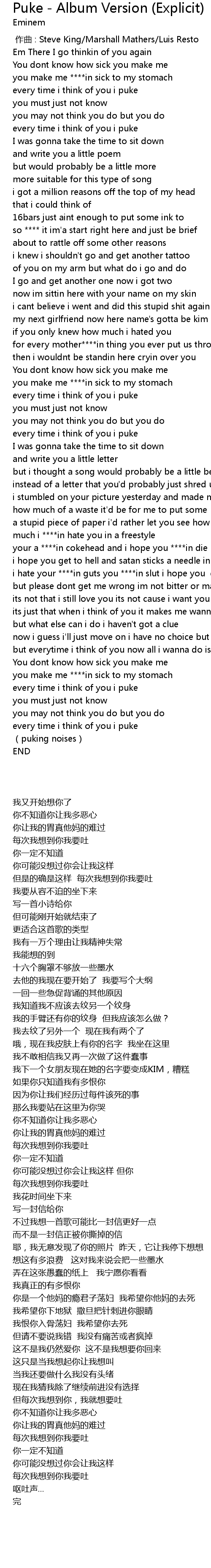 | [03:01.100] | but everytime i think of you now all i wanna do is puke |