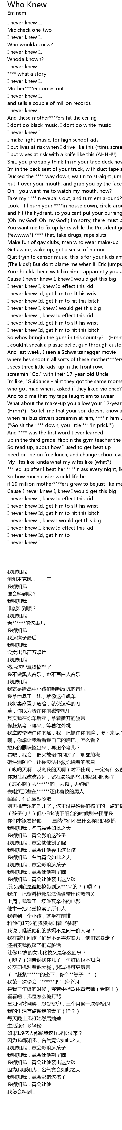 | 歌曲 | Who Knew |
