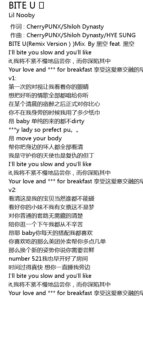 | [00:01.148] | BITE U(Remix Version))Mix. By 黑空 feat. 黑空 |