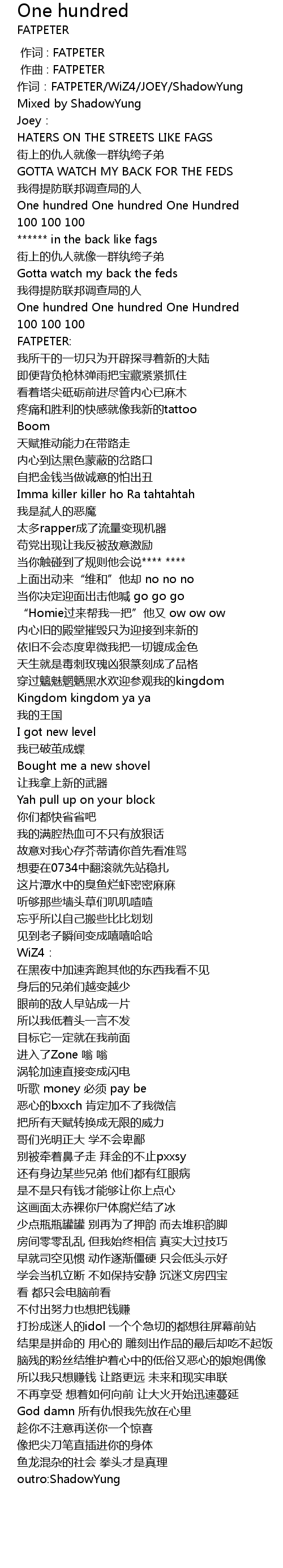 | [00:11.360] | zuo ci: FATPETER WiZ4 JOEY ShadowYung |